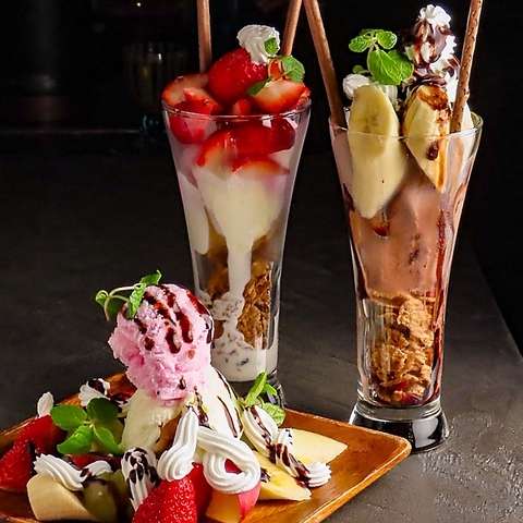 夜のご褒美にぴったりな旬の果実を贅沢に使った大人の夜パフェ。女子会や飲み終わりの“あと少し”に最適♪