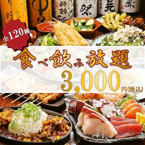 各種宴会に◎【人気No.1】お造り/焼鳥/もつ鍋等◆全120種×2時間食べ飲み放題4000⇒3000円