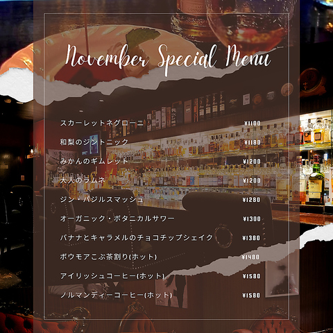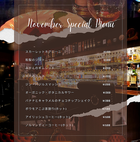 - 飲み放題も本格Barとして妥協なくお作り致しますのでお楽しみ下さい。