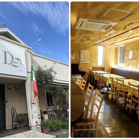 新所沢駅西口より徒歩5分の閑静な住宅街にある【トラットリア・デルフィーノ】旧パスタデルフィーノ 南イタリア風の白を基調とした明るい外観が目印となっております週末にはピアノ演奏もお楽しみ頂けます。お問合せは04-2923-6618