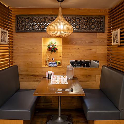 【片側ソファのカジュアルなテーブル席】ゆったりと落ち着いたお洒落な店内で思う存分タイ料理をお楽しみいただけます♪団体様にもおすすめのお席となっております!当店では貸切53名様までご利用可能となっておりますので、お気軽に店舗までお問い合わせください★ご宴会など、ご利用シーンに合わせてご用意いたします。