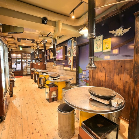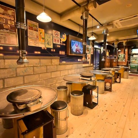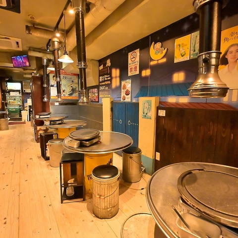 店内に一歩足を踏み入れると、ドラム缶を使った丸いテーブルと椅子がずらりと並び、韓国居酒屋の雰囲気をお楽しみいただけます♪美味しいお料理とお酒を囲んで素敵なひとときをお過ごしください。