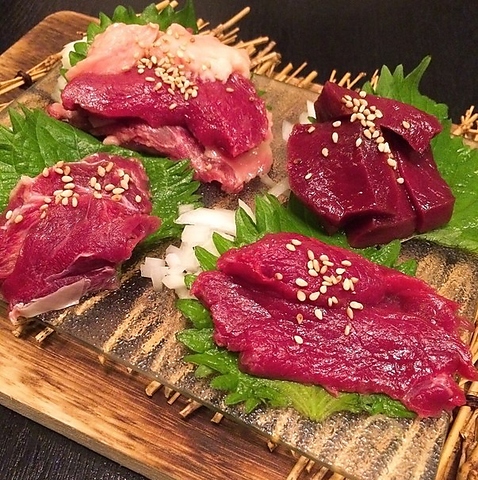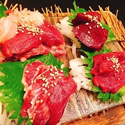 臭みが全くない新鮮で肉の本来の味が堪能出来る赤身肉やゴマ油とネギで食べる馬のレバーやハツなどの種類があります。鮮Qと言ったら生肉! 是非皆様お召し上がり下さい。