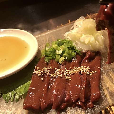 新鮮な馬肉のレバ刺は、濃厚な旨味が特徴。新鮮さが際立ち、口の中でとろけるような食感を楽しめます。ごま油との相性も抜群で、風味豊かな味わいが一層引き立ちます。豚や牛とは一味違う、馬肉特有の甘みとコクが堪能できる至福の一品。新鮮なねぎや薬味を添えて、ぜひ一度ご賞味ください。
