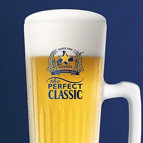 地域で数店舗しかないと言われる「パーフェクトクラシック」に認定された当店。お飲み物は、北海道限定サッポロクラシック樽生や、こだわり抜いた生ビール「SORACHI1984」をご用意しております。また全国各地から厳選した種類豊富な日本酒は、常時約30種類以上をご用意しております☆