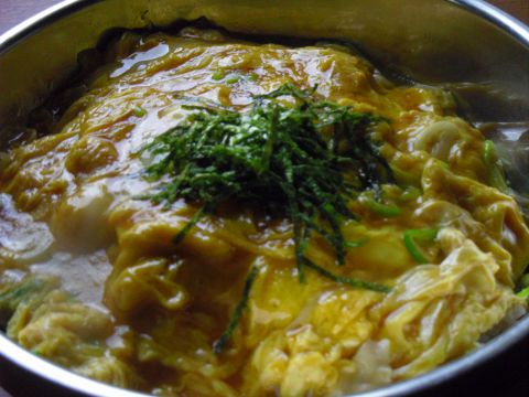 特性醤油だれベースの味付けでご飯の上にふわふわ玉子がよくあう。値段もリーズナブル。