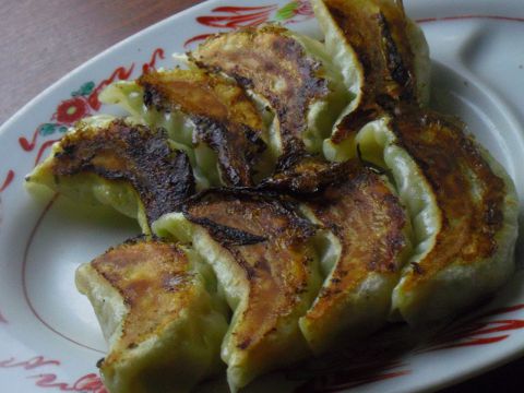 ジューシーな餃子は、オリジナルの刻みニンニクたれに入れ、お好みでおいしく食べれる。