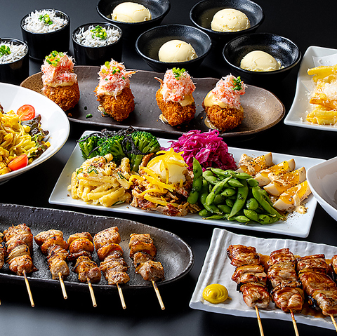 北海道の三大焼鳥を楽しめるスペシャルなコース♪定番の「串焼き」や「コッコちゃんのしょうゆザンギ」はもちろん、「釜揚げしらすご飯」、「蟹クリームコロッケ 紅ズワイガニのせ」など全15品が堪能できるスペシャルなコースです!