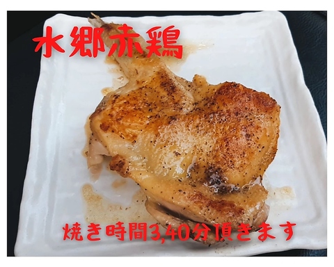 当店のもう一つの名物!千葉県水郷赤鶏のもも肉を数種のスパイスでじっくり焼きます。(水郷赤鶏の美味しさの理由)・歯ごたえのあるしっかりとした肉質・旨味のある肉質・ジューシーな肉質