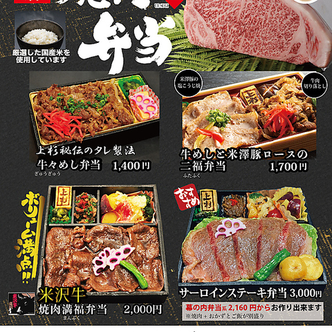 上杉お弁当をお手軽にご自宅で!ご予算に合わせて様々なシーンにご対応致します。当日受け渡し3時間前までのご注文でOKです!11:30より受渡し可能。数が多い場合はお早めにお願い致します。