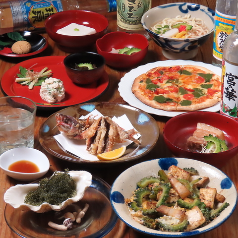 沖縄から取り寄せた新鮮な食材で作ったお料理を取り揃えています。沖縄の幸を堪能できるコースでどうぞ!