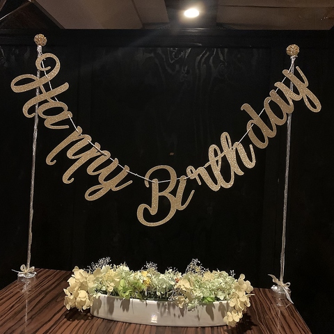 お誕生日パーティーの簡単な飾り付けやくす玉無料でご用意します。ご予約時にお気軽にご相談ください。