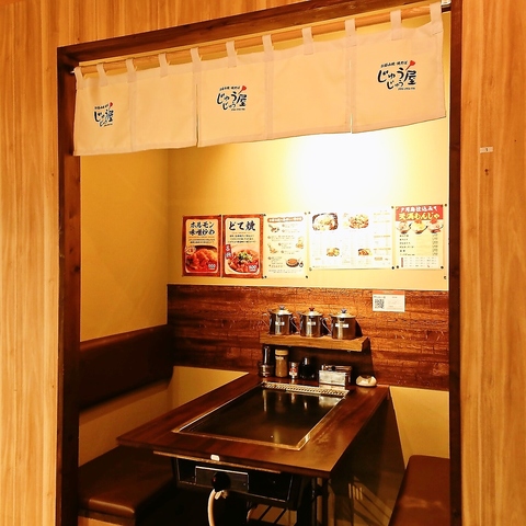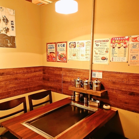 各テーブルに備え付けの鉄板で、お好み焼を焼きながらワイワイと会話をお楽しみいただけます!隣同士のテーブル席で団体様での利用も可能♪