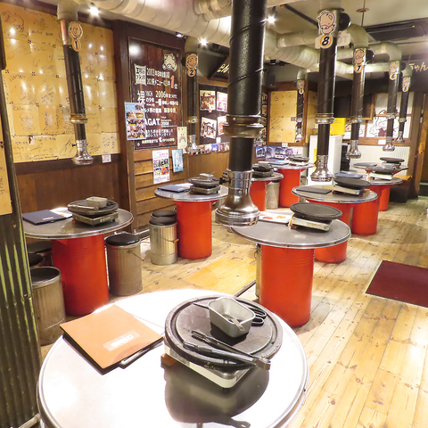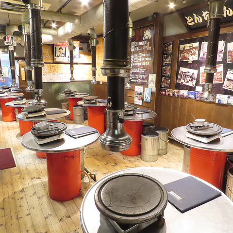 本場韓国の味を気軽に楽しめる◎オンドル石焼きを未体験の人はぜひ味わってみて!ドラム缶の丸いテーブルで、仲間と囲む楽しいひととき。油跳ねガードと排煙ダクト完備で、安心してお料理を楽しめます。