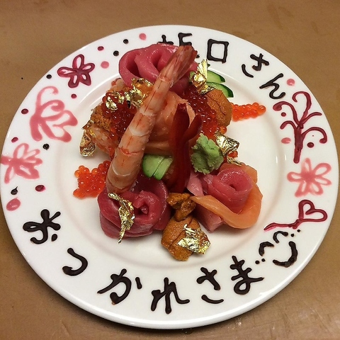 当店自慢の「お寿司」は四季に合わせてご提供!旬の鮮魚を使用した寿司職人の本格料理「お寿司」には本マグリの大トロが入った握り!コース料理でもお楽しみいただけます◎コース料理は他にも、お刺身盛り合わせや天ぷら、サラダやデザートなど幅広くご用意しております!豪華シーンに合わせてぜひご賞味くださいませ!