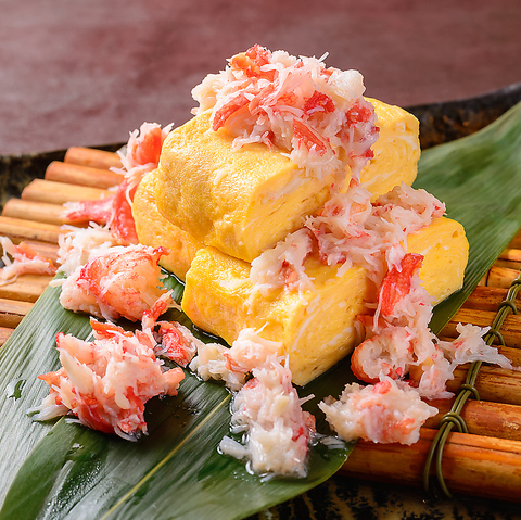 こだわりのだし巻き玉子に、本ズワイガニを贅沢に使用した特製の餡をたっぷりとかけました。だし巻き玉子のみ770円(税込)もございます!