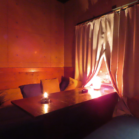 キャンドルが灯るムード満点の半個室で、女子会や合コンをもっと特別に♪カーテンを閉めれば、まるでプライベートルームのような空間に。おしゃべりや写真撮影も気兼ねなく楽しめ、友達や仲間と過ごす時間を、より特別に演出してくれるお席です。