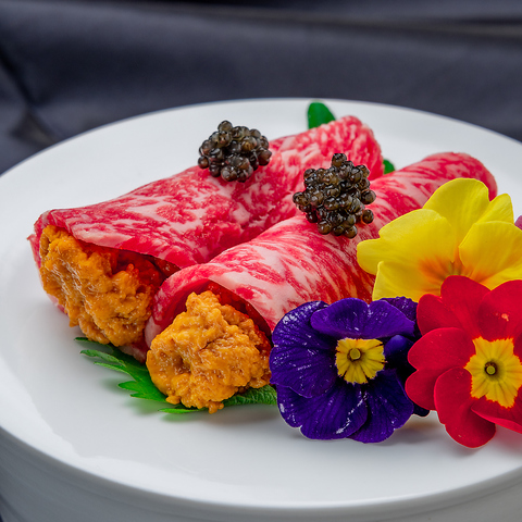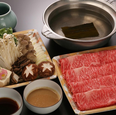 《最高級の黒毛和牛が味わえます》逸品料理からコースまで品揃え豊富に取り揃えています。肉質、霜降り、風味共に最高のお肉をご堪能頂けます。コースはお客様のお好みに合わせてオリジナルコースのご用意も可能です。すき焼き・しゃぶしゃぶも絶品です。