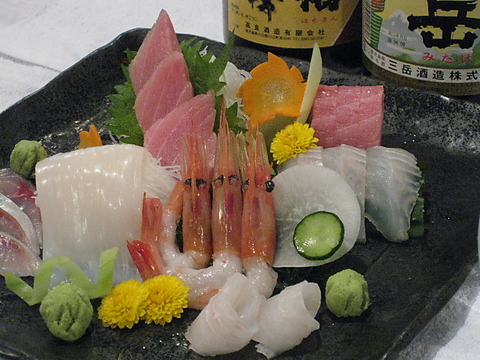 料理はたくさん美味しいものがあるので、まずは新鮮刺身を。