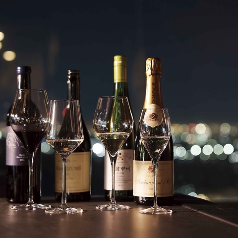 ソムリエが厳選したワインや国産ウイスキーを豊富に取り揃えております。ソムリエがコースに合うペアリングドリンクをお選びいたします。