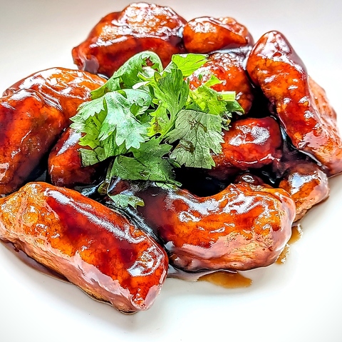 自家製黒酢だれがあとを引く旨さ!!