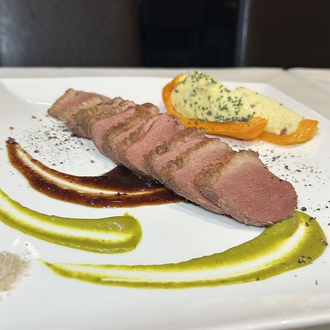 フランス最高峰シャラン産のエトゥフェ鴨を使用した自慢の一品。オーブンで焼いた鴨は香ばしくフランス産ワインとの相性が絶妙です。