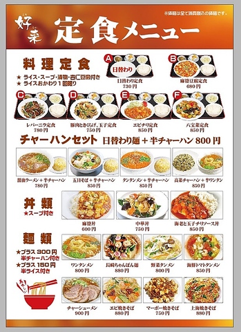 各種定食セットなどランチも営業中でメニューも充実。料理定食はライスおかわり1回無料です♪