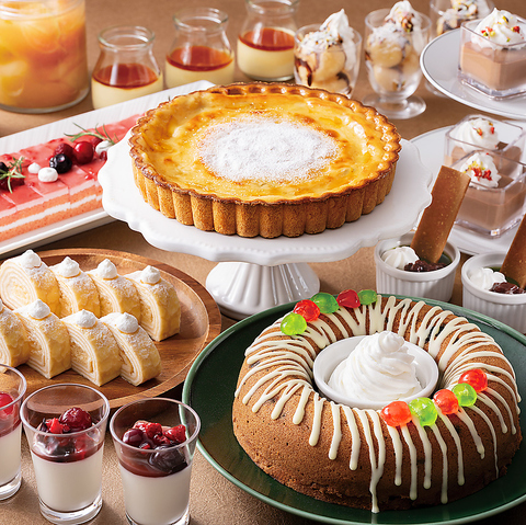 タルト・ケーキ・ロールケーキ・プリン・和菓子などのデザートを種類豊富にご準備しております。日替わりメニューの他、土・日・祝限定メニューでは「ぜんざい」が登場。ディナー限定のハーゲンダッツアイスクリームもございます♪