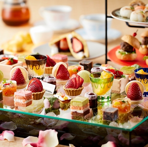 午後の集いに、心満ちる和の贅沢を。2名様から気軽に、大人数でも華やかに楽しめるアフタヌーンティー。全13種のデザート、全3種の軽食つき。また、全18種のドリンクは90分間飲み放題です。