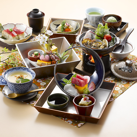 定番商品を源氏流にアレンジ!!色々なお料理が少しづつ沢山味わえる、お昼の松花堂弁当です。~献立例~■一六升盛り弁当(本日のお造り、旬の焼魚、海老天婦羅、茶碗蒸し、まぐろばらちらし、かに太巻き、ひとくち寿司、酢の物、椀物、他7品)■稲庭風うどん■甘味