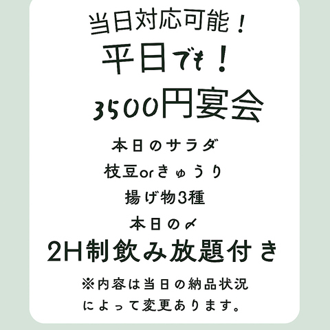 当日来店でも頼めるお得な宴会コース!!2h制飲み放題もついてる!!