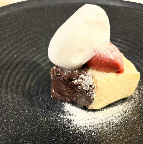 定番の枠にとらわれない工夫を凝らしたデザートをご用意しています。例えば、小豆を香り高いエスプレッソで炊き上げた独自のティラミスなど、意外な組み合わせが生む調和を楽しめます。食事の最後を締めくくる大切な一品だからこそ、他では味わえない繊細な感性で仕上げました。驚きに満ちた至福のひとときをお約束します。