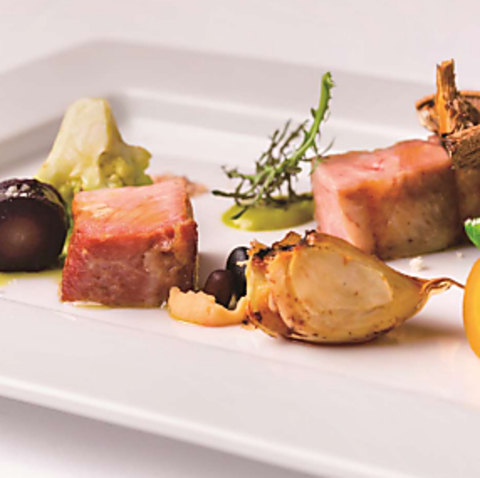 <コース内容一例>アミューズ/前菜1/前菜2/パスタ/メイン料理/リゾット/デザート/食後のお飲み物と小菓子 ※コース料金にサービス料10%の金額が含まれています。 ※別途オプションを追加可能です。