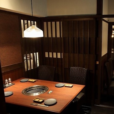 当店は全席に【無煙ロースター】を設置しておりますので、匂いも付きにくく煙も気にせずお食事をお楽しみいただくことが可能です。また、ロールカーテンで仕切れる半個室のお席もございますので、特別な日にもご活用頂けます。