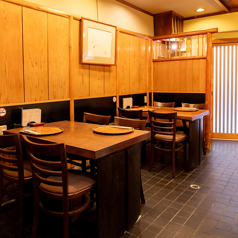 京都、すっぽん鍋・はも料理【三栄】テーブル席は2名~4名様のご使用に。テーブル席やお座敷は、ご家族やご友人同士でのお集まりや、ご会食・ご接待などにご利用いただけます。落ち着いた雰囲気でデートや記念日、接待等はもちろん各種ご宴会や仕事終わりでのお食事など様々なシーンに対応いたしております。