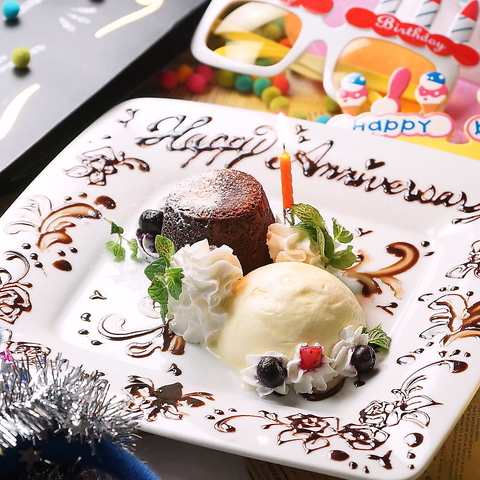 サプライズもお任せ下さい!記念日・誕生日、宴会のサプライズに♪自慢のデザートにメッセージを添えて☆