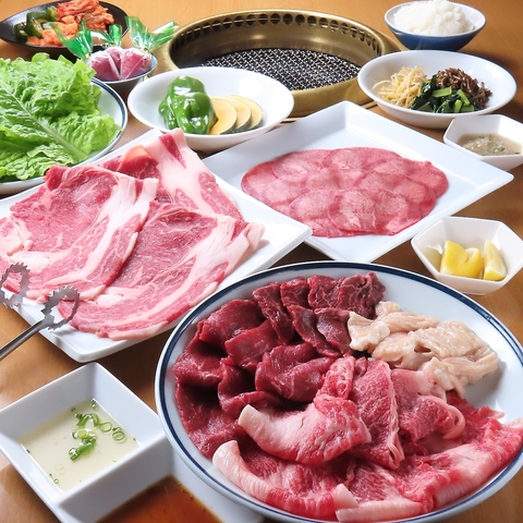 国産上ロース、上カルビ、国産牛ロース、ハラミなど人気メニューがたっぷりの盛り合わせも♪