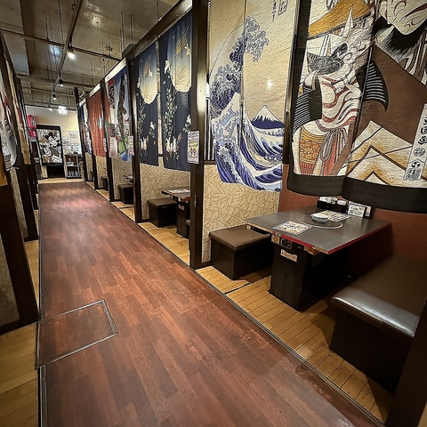半個室席です♪少人数様でも、団体様でもご利用いただけます。各種宴会にピッタリ!女子会、会社の飲み会、会社関係のご宴会・サークル合宿の打ち上げ・同窓会・特別な日のお祝いなどなど、用途やシーンを問わずお使い頂ける使い勝手の良い空間です♪