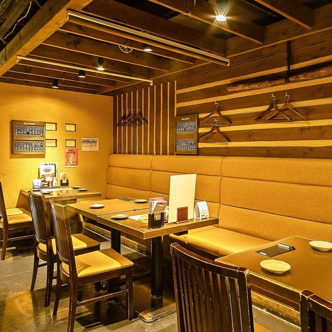 2名~4名様用テーブル席。落ち着いた店内空間にあるテーブル席は個室ではなくとも、ゆったりとお食事を楽しむことが可能です。飲み放題付コースや美味しい逸品料理、種類豊富なドリンクをご用意してお待ちしております。