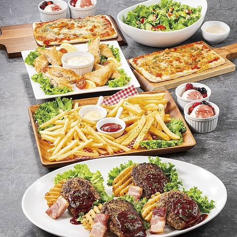 手軽につまめる軽食や、麺・ごはんものなどのしっかりとしたお食事、ついつい手が伸びるデザートまで、フードメニューも充実!パーティーシーンに最適なプレートも多数! 詳しくは料理・ドリンク・コースページへ◎