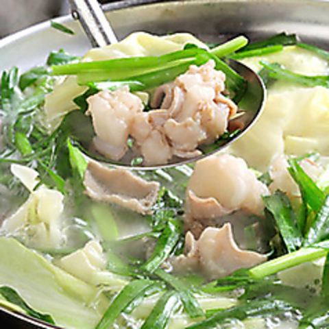 甘辛スープにぷりっぷりのもつが最高です。年中人気です