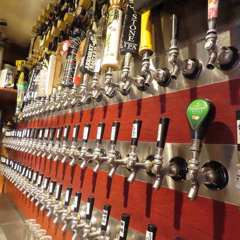 常時70種類以上のクラフトビールを樽で提供しております。ビールの炭酸ガスの量や強さ、ビールの濁りやグラスの形状、温度など、そのビールを一番美味しく飲める状態でご提供しております!