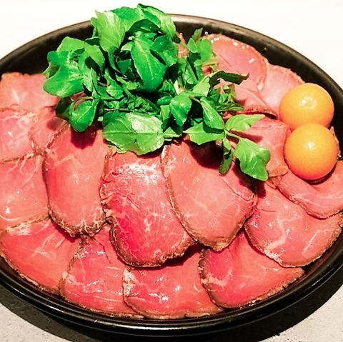 グレービーソースのジュレを纏った、ローストビーフ!人数に合わせてサイズをお選びいただけます。※写真は大サイズ 中(2~3人前)…1586円(税込)/小(1~2人前)…968円(税込)