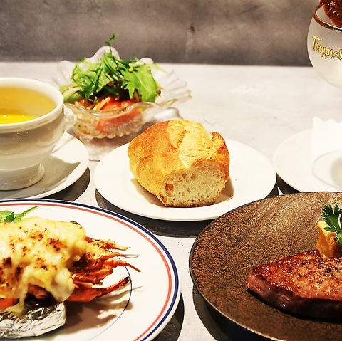 シェフ渾身の絶品「熟成肉の厚切りステーキ」や「鯛のポワレ」などこだわりの料理がラインナップされたコース料理もご用意しております◎お洒落なデザートやマリネも付いて、歓送迎会などにピッタリのプランです♪※お電話のみの受付です