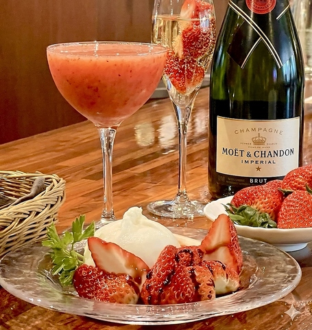 大人気のイタリア産の生モッツァレラチーズを旬のいちごと共に。特に女性に大人気です。他にもストロベリーダイキリやロッシーニなど、店内はいちごで溢れています☆ご来店の際はぜひご賞味ください!結婚式2次会にもおすすめ!