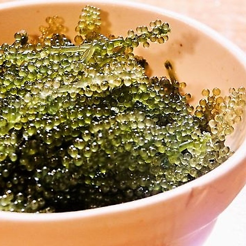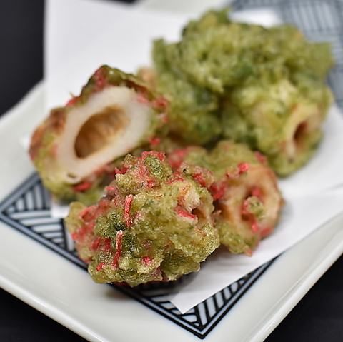 沖縄の海藻アーサ(アオサ)に紅生姜がポイント。ちくわとの相性もバッチリ大人のおつまみ。