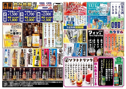 19:30までにスタートでビール無し飲み放題1時間390円!