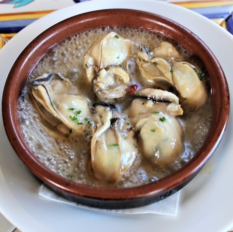 濃厚でクリーミーな広島産の牡蠣のアヒージョ。ぷりっぷりで濃厚な広島宮島産の牡蠣です。カキの旨味たっぷりのオリーブオイルソースは是非バケットとご一緒に。