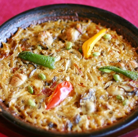 極細のパスタを使ったパスタパエリア。是非お酒のおつまみとしてお楽しみ下さい ※パエリアより一回り小さいサイズです。
