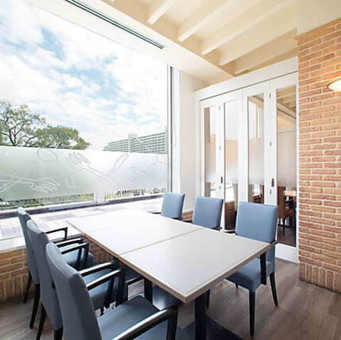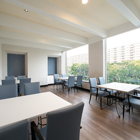 新浦安駅北口から徒歩1分、ペディストリアンデッキを渡ってすぐのホテル2階にございます。ガラス張りの開放的な空間は、明るく、広々としており、落ち着いてお食事をお楽しみいただけます。ご家族とのお食事やご友人とのお集まりなど、様々なシーンでご利用ください。